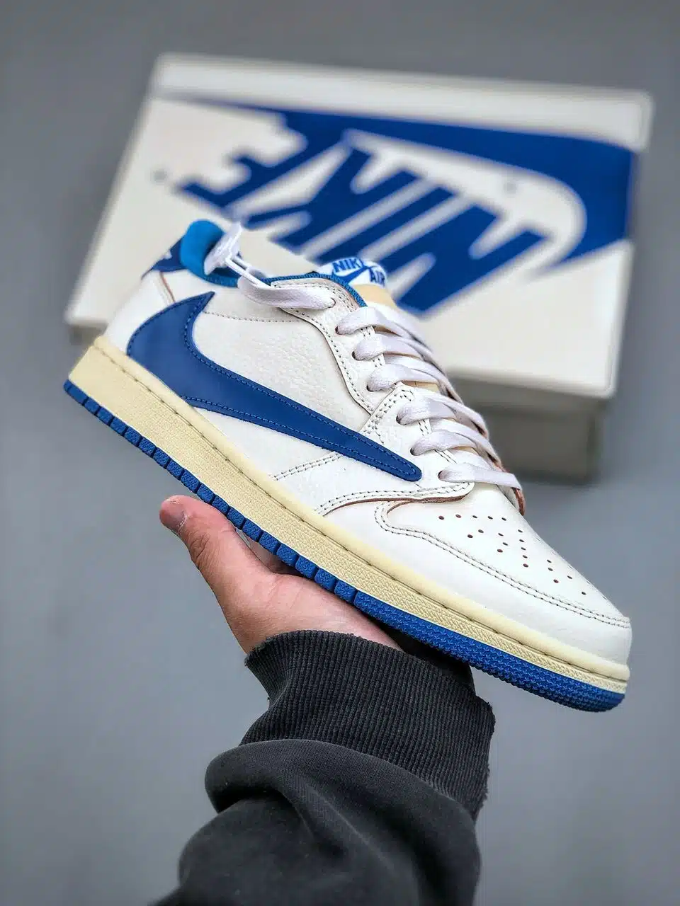 RÉPLICA JORDAN 1 RETRO LOW OG SP FRAGMENT X TRAVIS SCOTT SAIL ‘MILITARY BLUE’